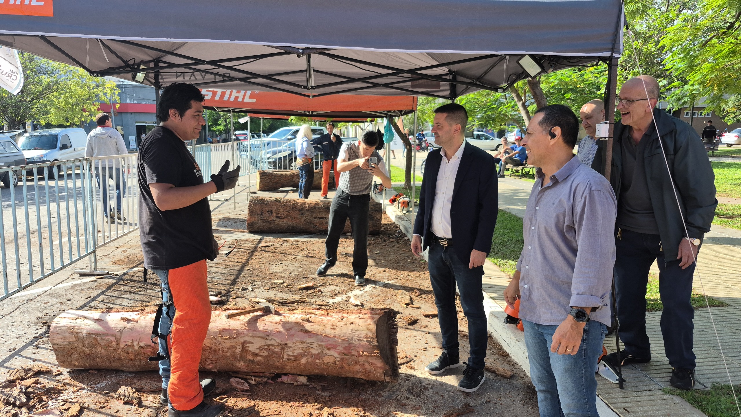 El inicio del Certamen estuvo encabezado por el intendente Bruno Cipolini, quien estuvo acompañado por el Secretario de Desarrollo Local Martín Sobol, el secretario de Relaciones Institucionales Eduardo Molina; el coordinador del evento Cristhian Alvarenga; Daniel Petcho en representación de la empresa Stihl y los Escultores.