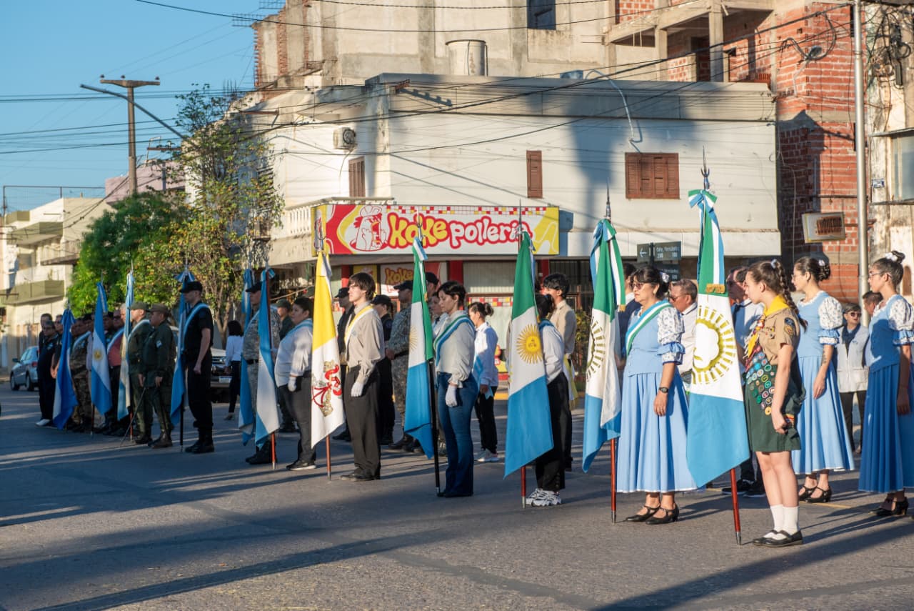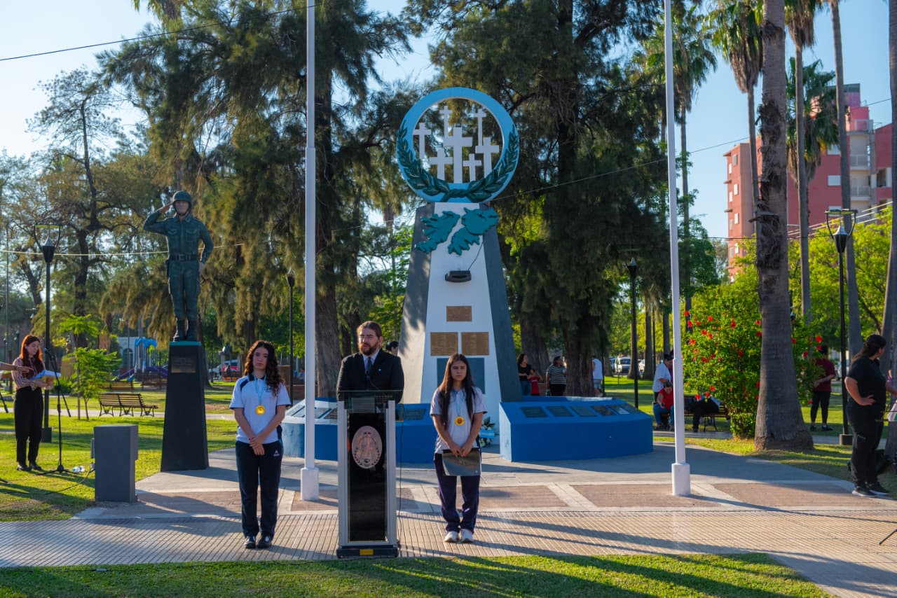 Además, estuvieron presentes alumnas de 5° año de la UEGP N°35 Instituto Adventista Loma Linda, quienes relataron una emotiva poesía alusiva a la fecha; la directora Regional Educativa IV-A Paloma Egea, Concejales, Funcionarios municipales, representantes de Instituciones Educativas, autoridades de las Fuerzas de Seguridad, familiares de Ex- Combatientes y vecinos de la ciudad.