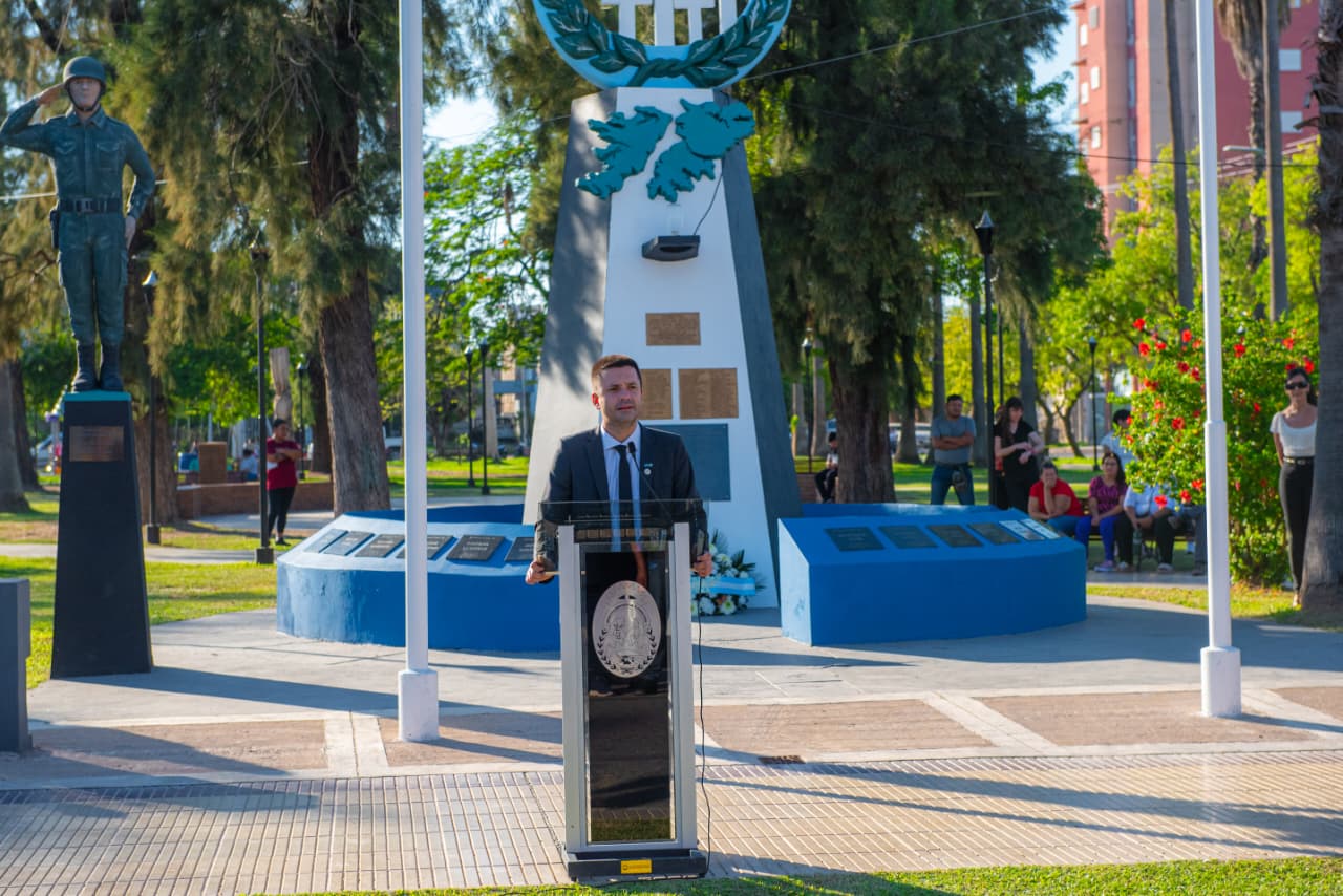 El acto tuvo lugar en el monumento a los Veteranos y Caídos en Malvinas, ubicado en la plaza Juan B. Justo. En la oportunidad el Intendente saludó especialmente a los veteranos presentes y agradeció el afecto recibido en cada encuentro compartido, destacando que la gesta de Malvinas constituye una página permanente en la historia nacional y un hecho que interpela a las nuevas generaciones.