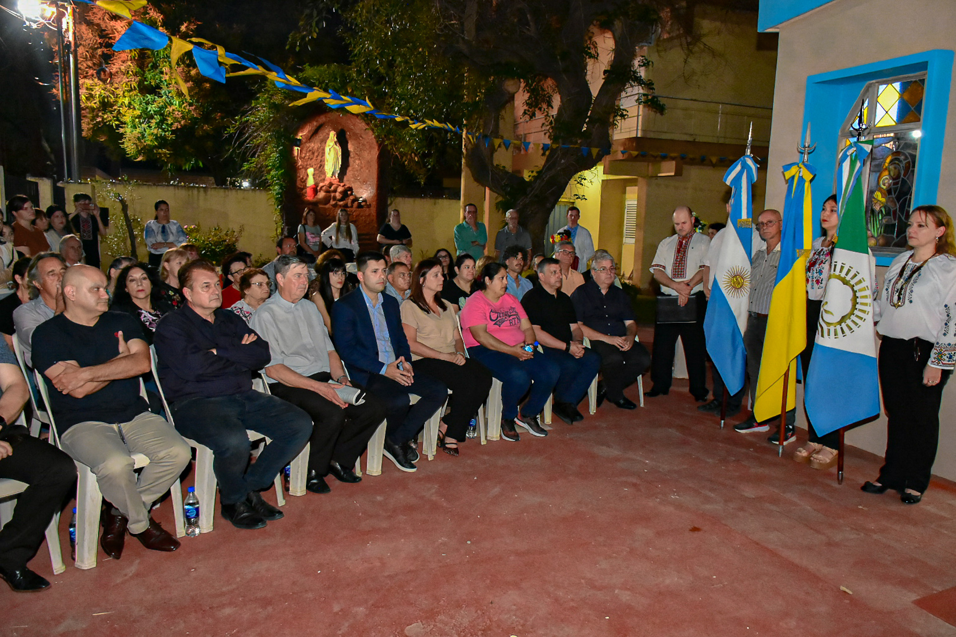 El acto contó con la presencia del intendente Bruno Cipolini; el ministro de la Producción Oscar Dudik, el Obispo Greco-Católico Monseñor Daniel Kozelinski; representantes de Confederación de Colectividades; miembros de la Asociación Ucraniana, representantes de instituciones intermedias; funcionarios municipales y Concejales.
