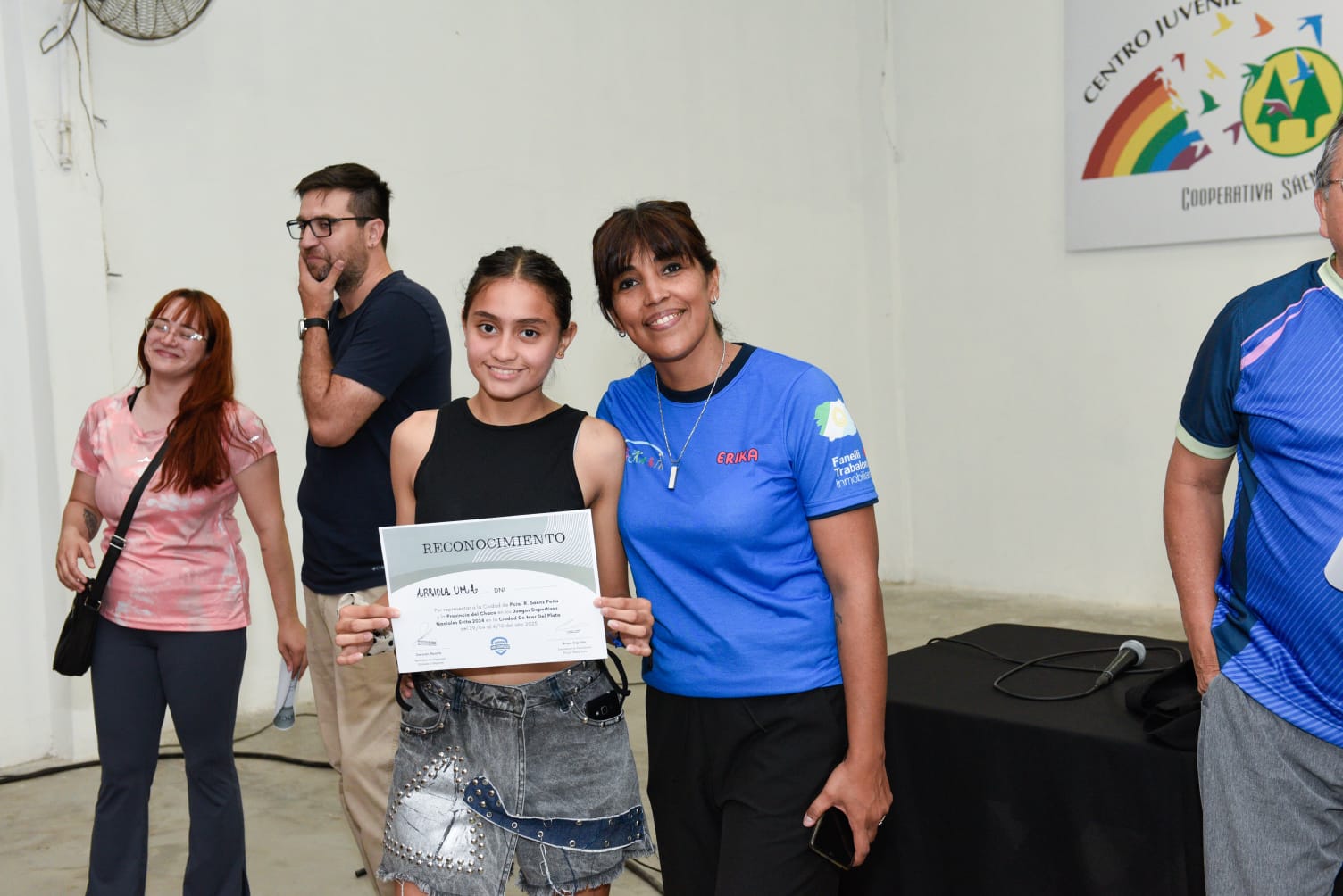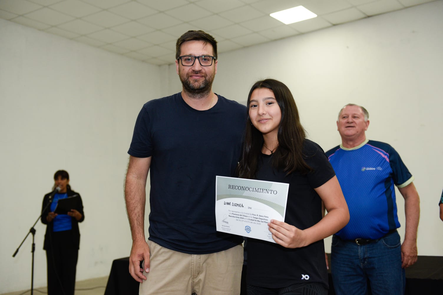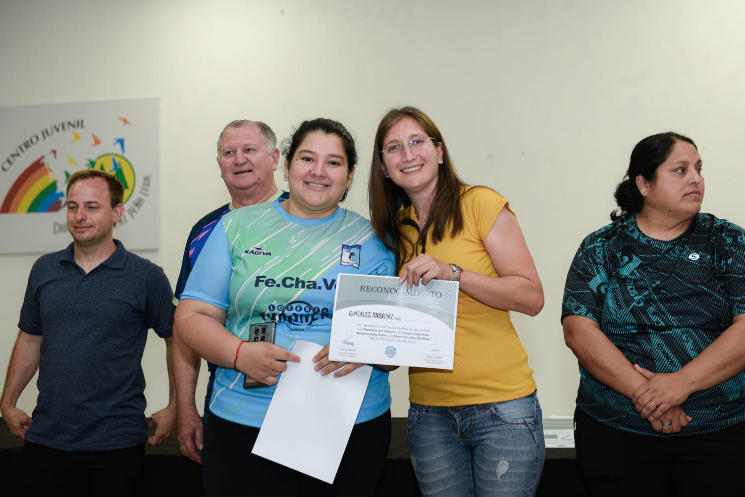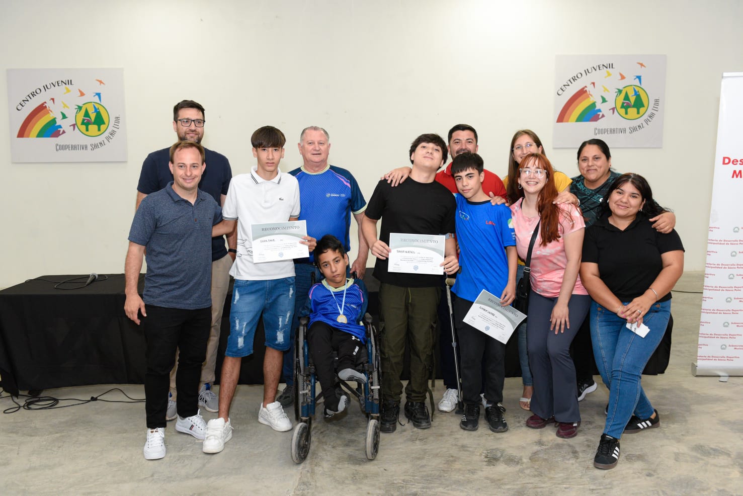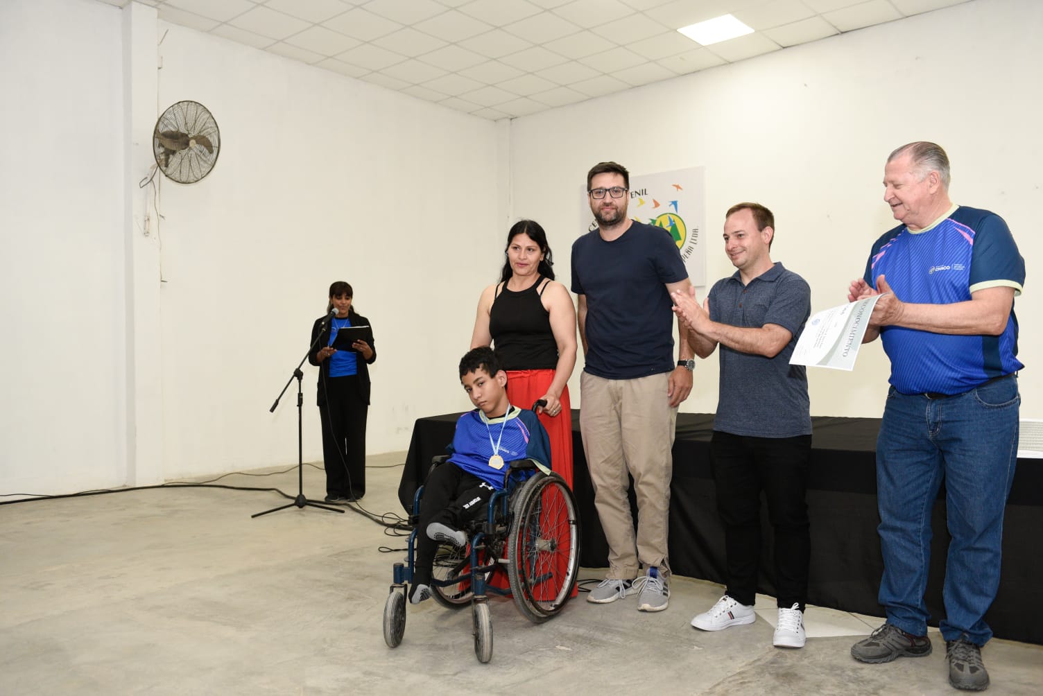 Acompañaron la entrega el secretario de Desarrollo Humano y Deportes Germán Rearte, la concejal Soledad Pérez, el Subsecretario de actividades para adultos mayores Jorge Kanas, los directores de Deportes Adaptados Angel Alvarez, de Desarrollo Deportivo Daniel Vega y de competencias municipales Nadia Cabral, también familiares y amigos.