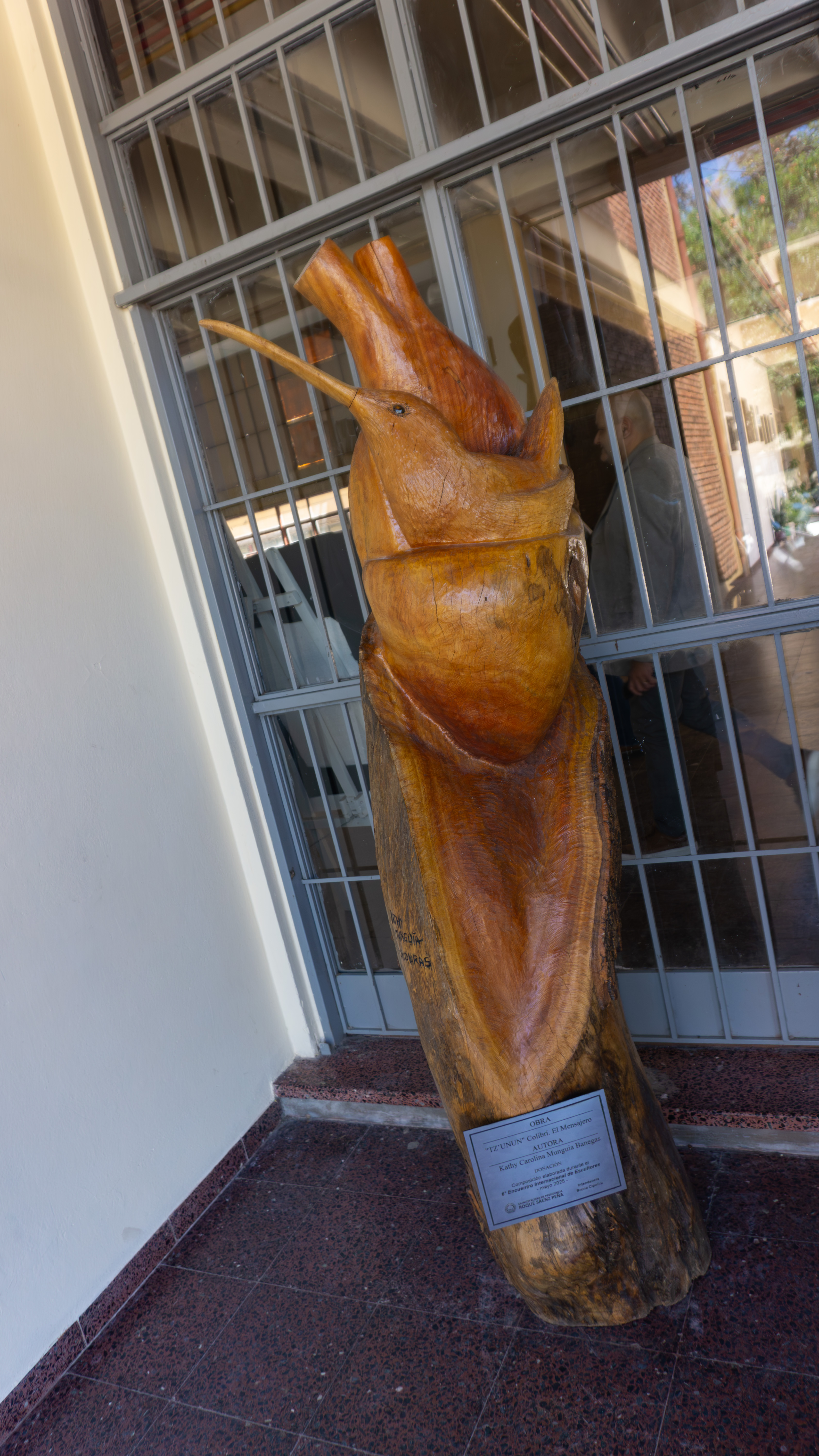 Se trata de la obra "Tz´Unun-Colibrí-El mensajero", tallada por la escultora hondureña Katy Carolina Munguia Machado, en el 6° Encuentro Internacional de Escultores que tuvo lugar en el mes de mayo en la ciudad.