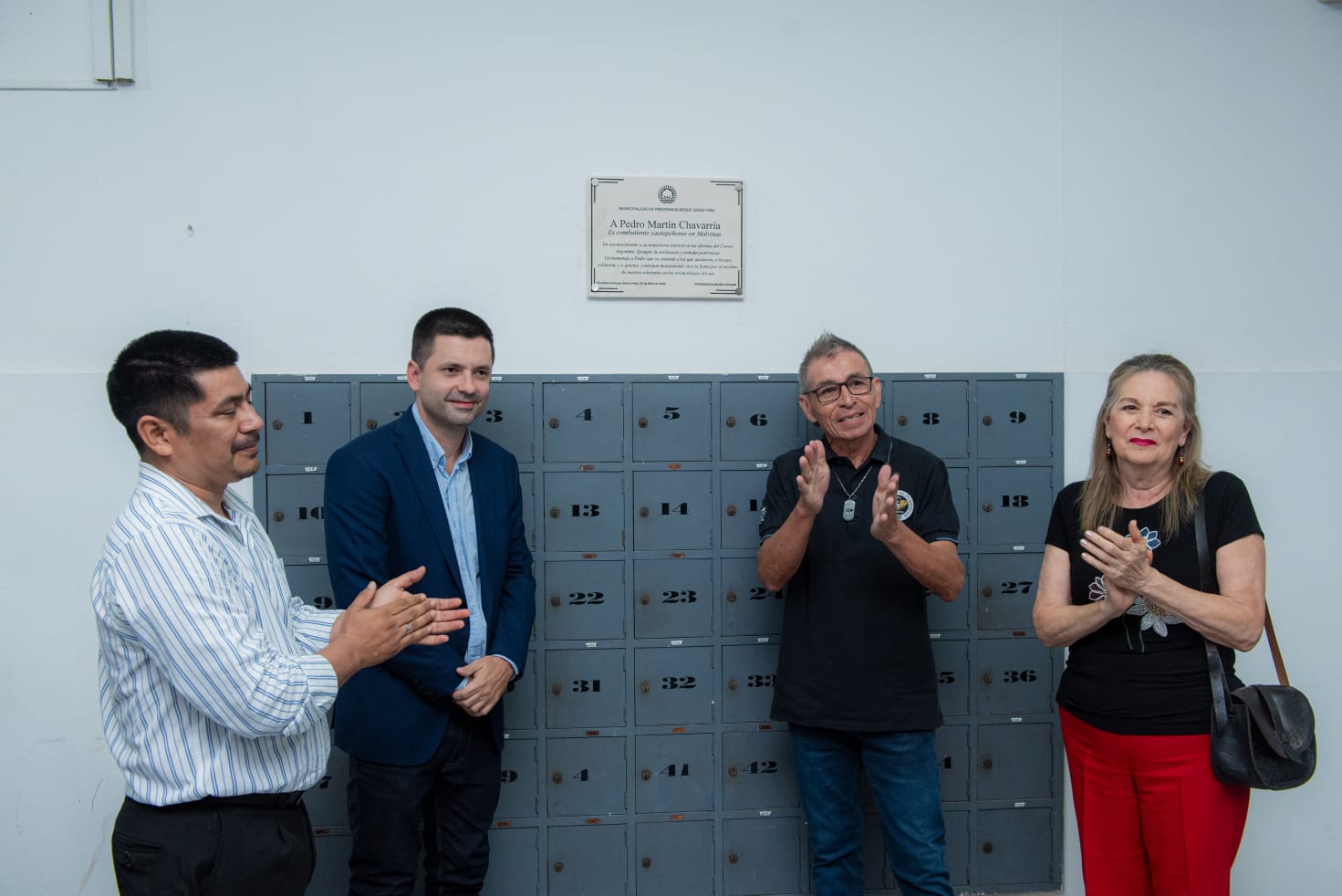 El acto estuvo encabezado por el intendente Bruno Cipolini quien estuvo acompañado por el diputado Nacional Gerardo Cipolini; autoridades del Correo Argentino; Concejales, funcionarios municipales, integrantes de las agrupaciones de Ex Combatientes de Malvinas, familiares y amigos de Pedro Martín Chavarría y empleados del Correo.