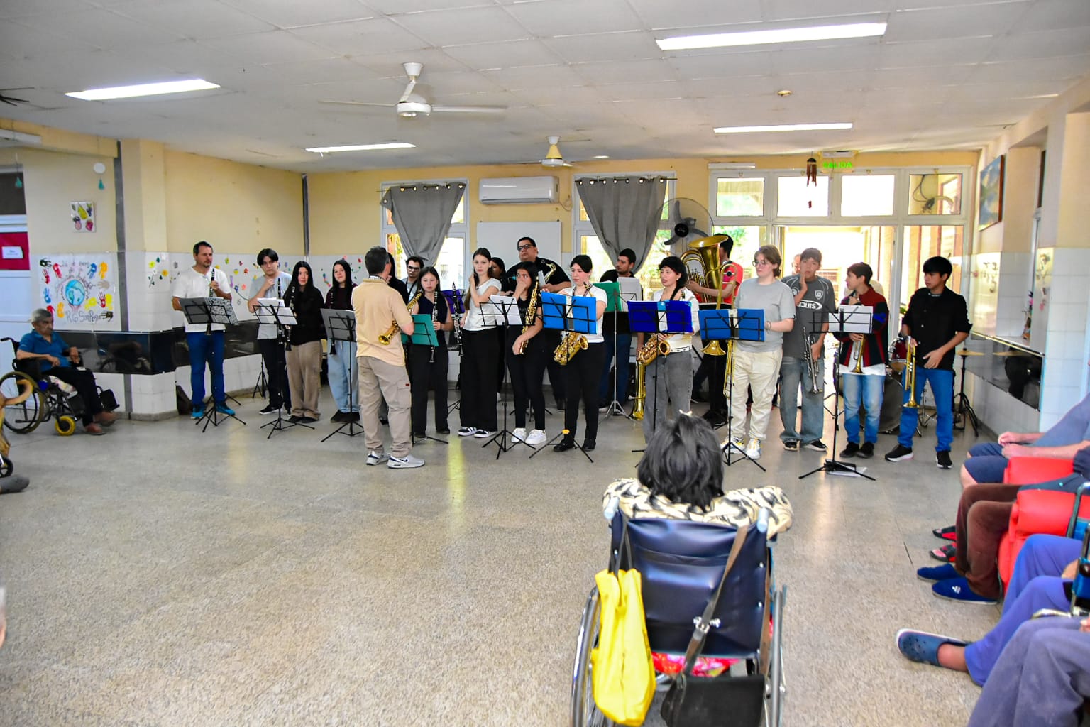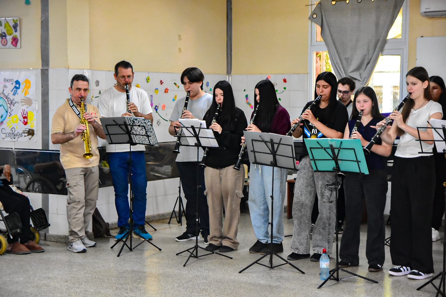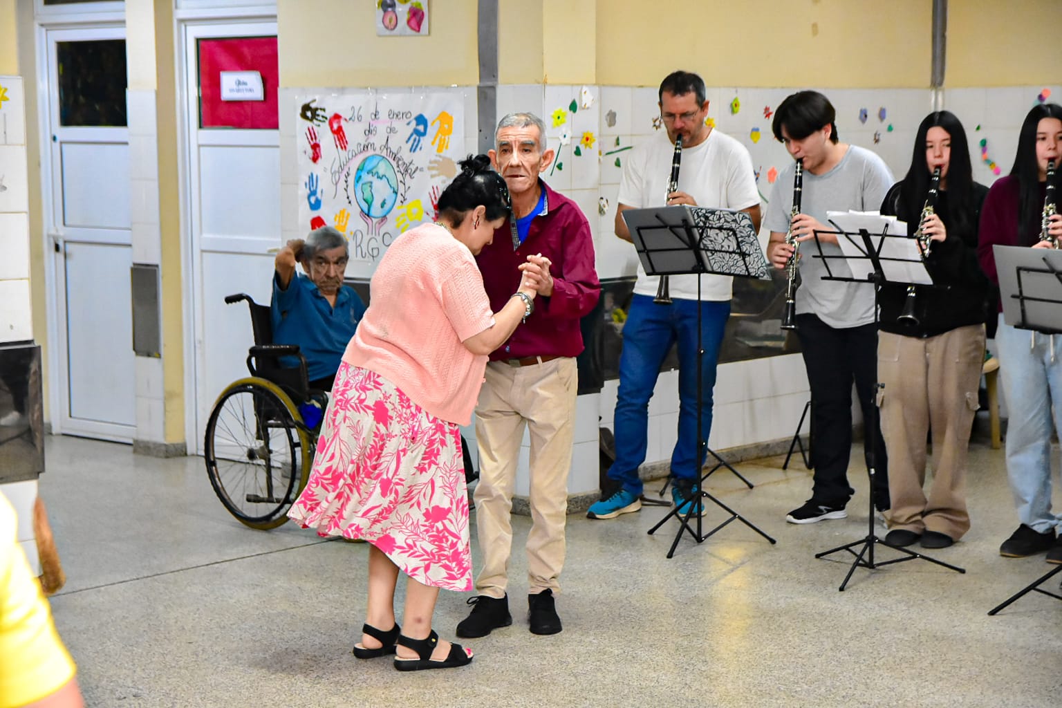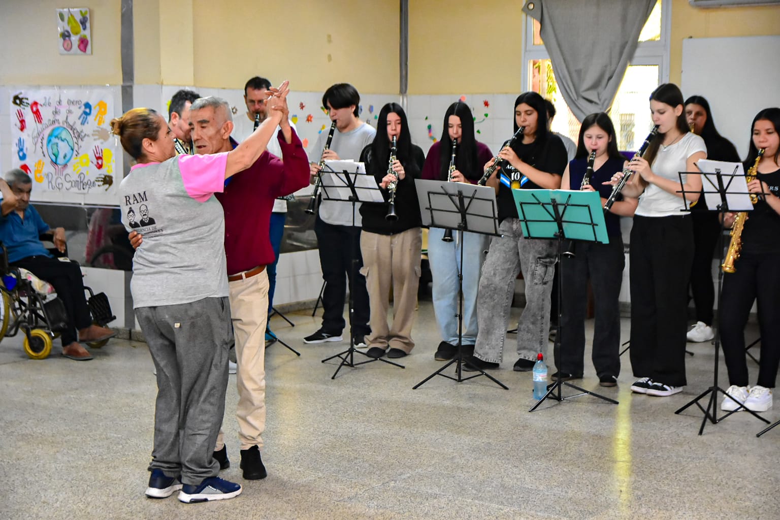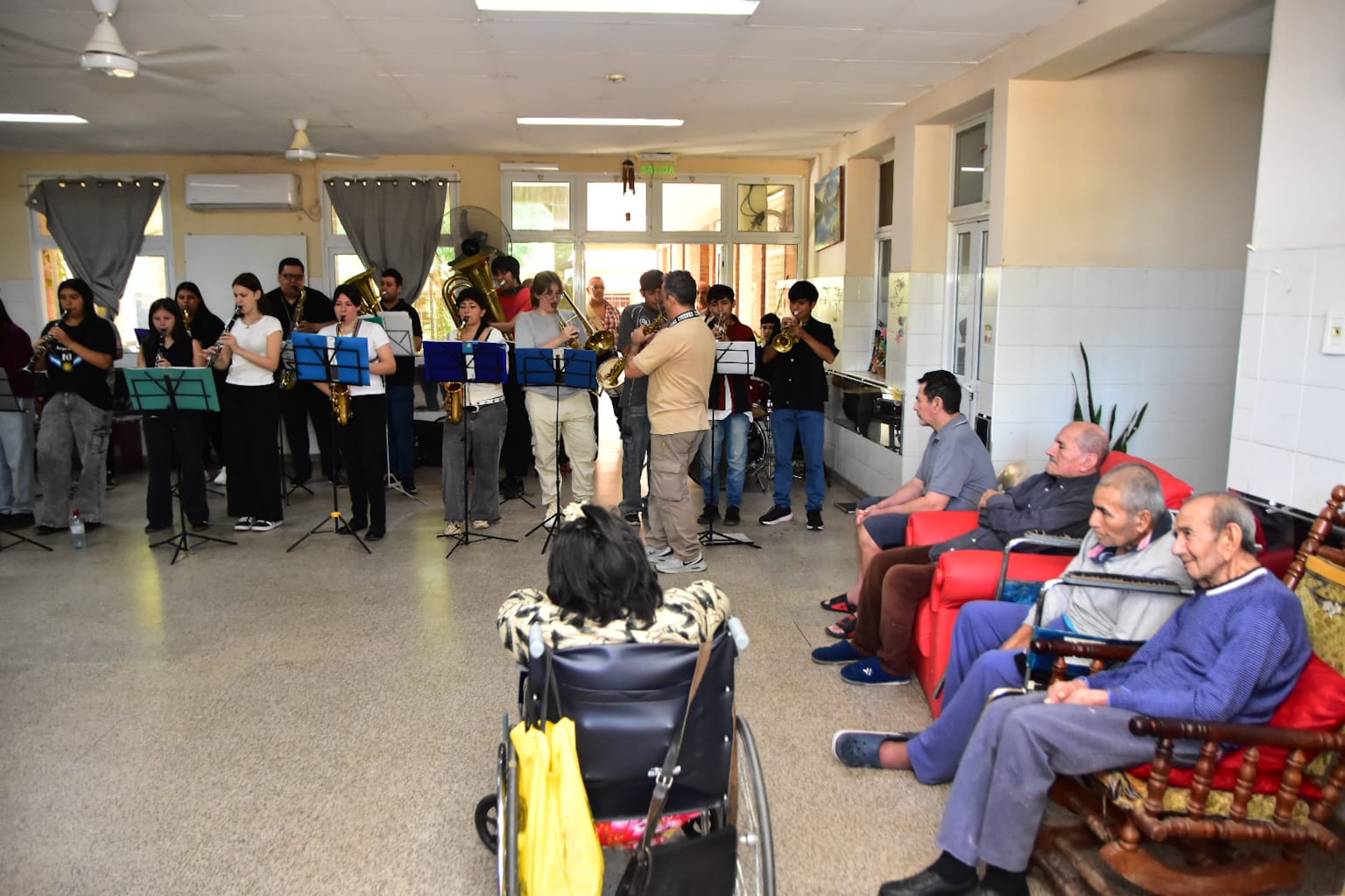 Durante la actividad, los jóvenes músicos ofrecieron un concierto que permitió compartir un momento especial junto a los adultos mayores. La propuesta se desarrolló en un marco de respeto y cordialidad, generando un espacio de encuentro, emoción y cercanía, que fue coronado por el aplauso de los presentes.
