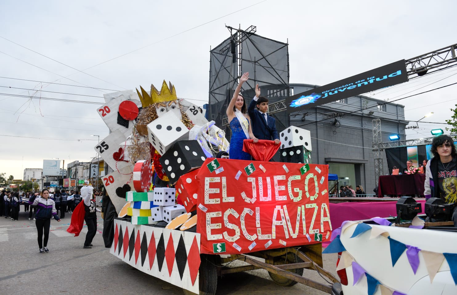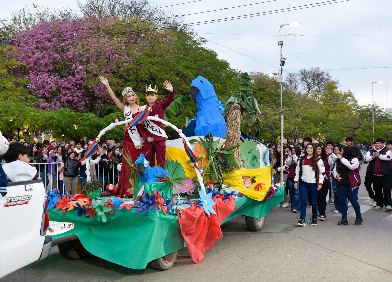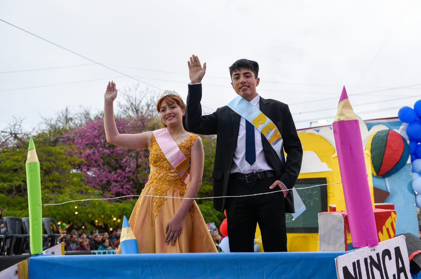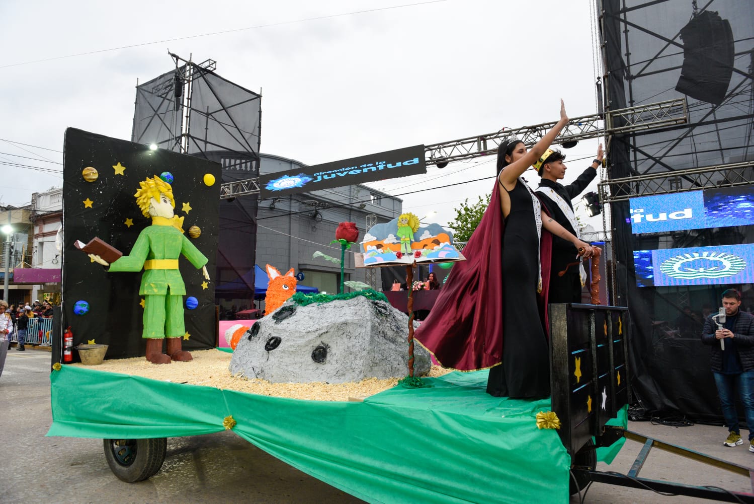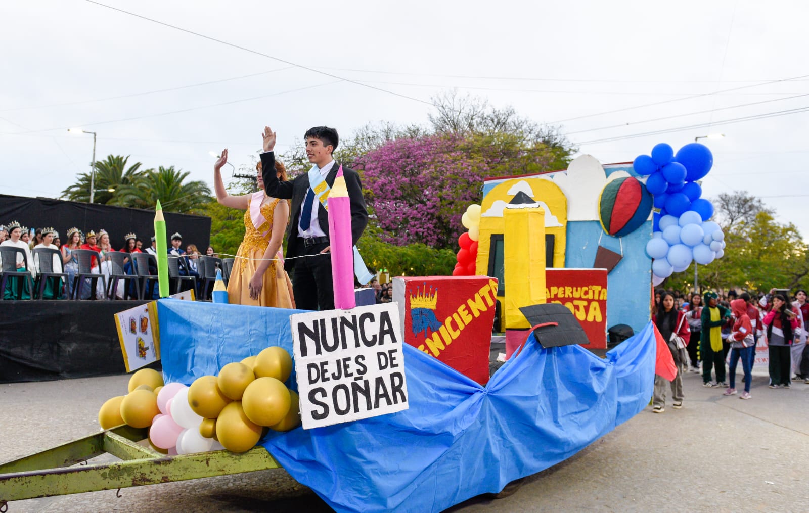 La elección de la Reina Provincial del Estudiante tuvo lugar en la esquina de las calles 12 y 7 del centro, luego del Desfile de Carrozas de los colegios secundarios de la ciudad que también fueron premiados por su creatividad.