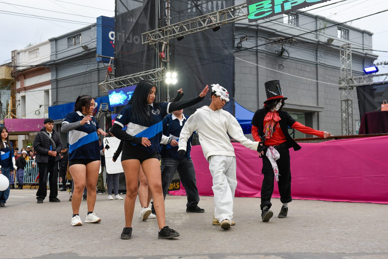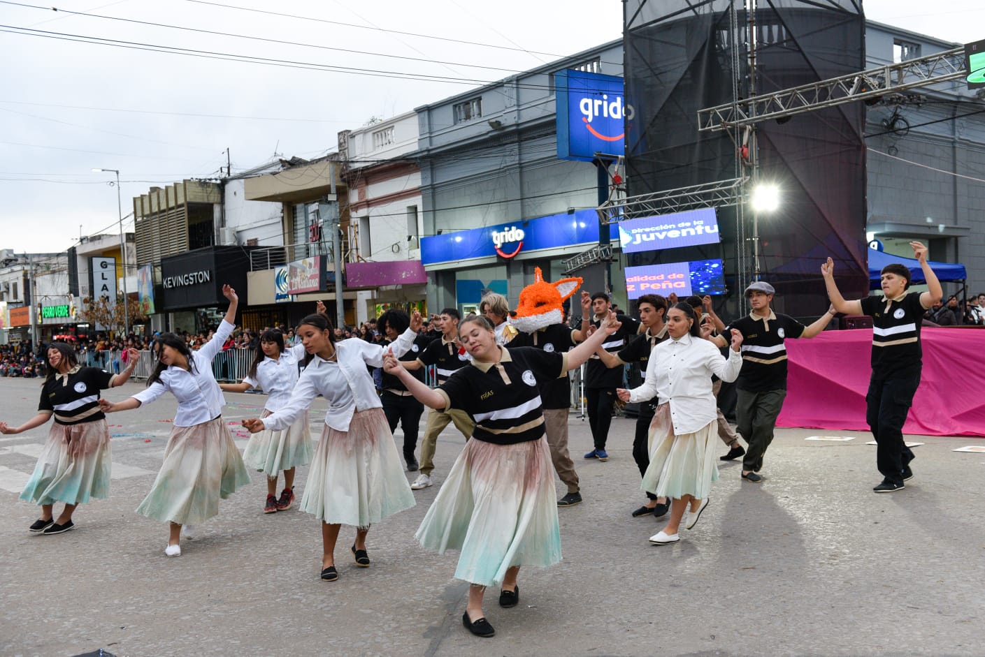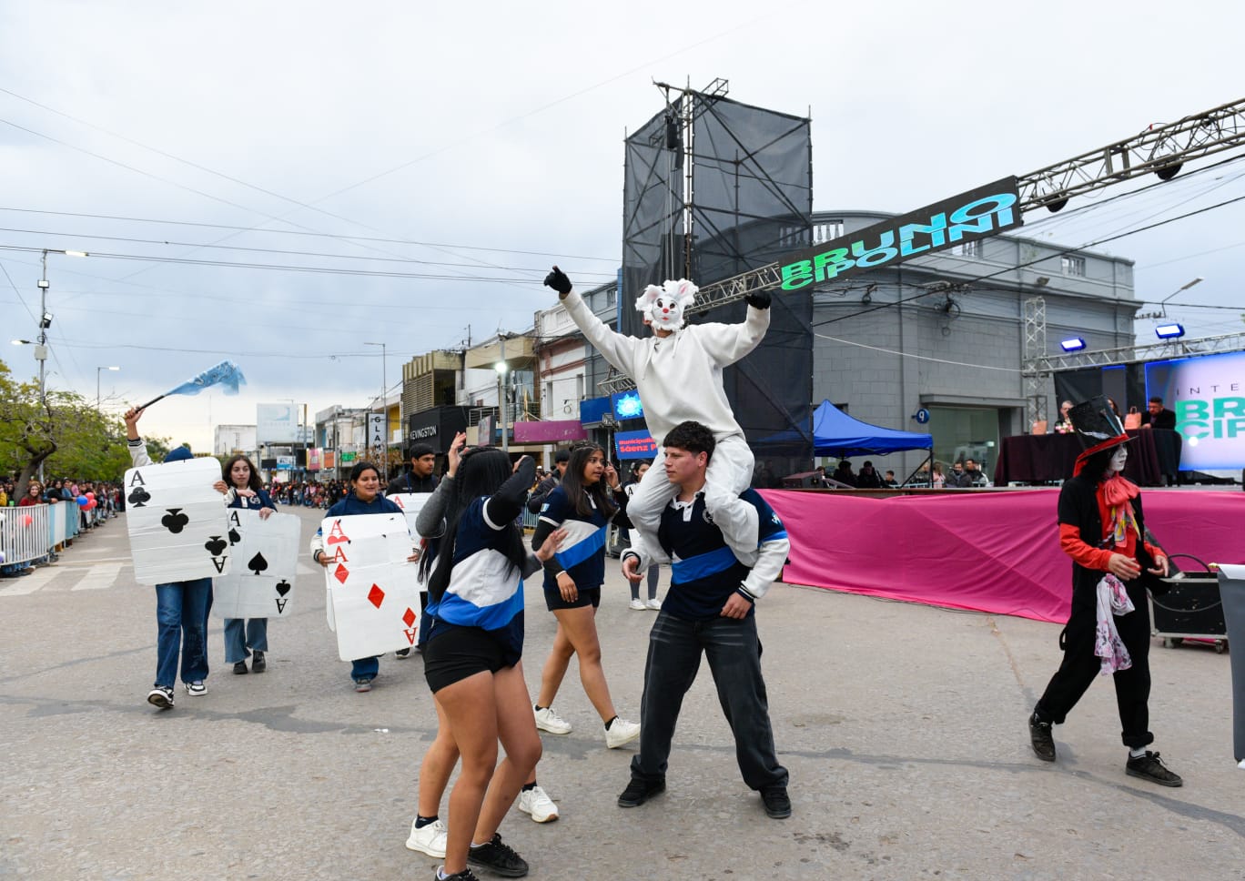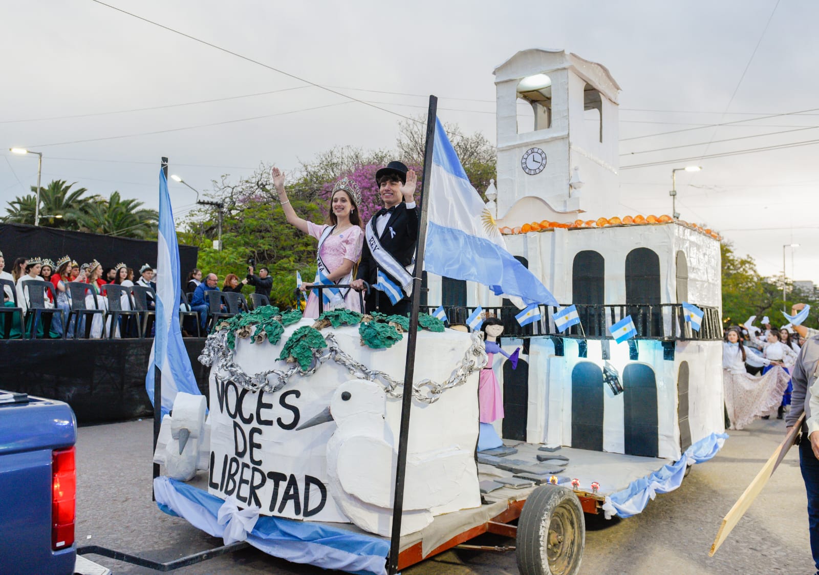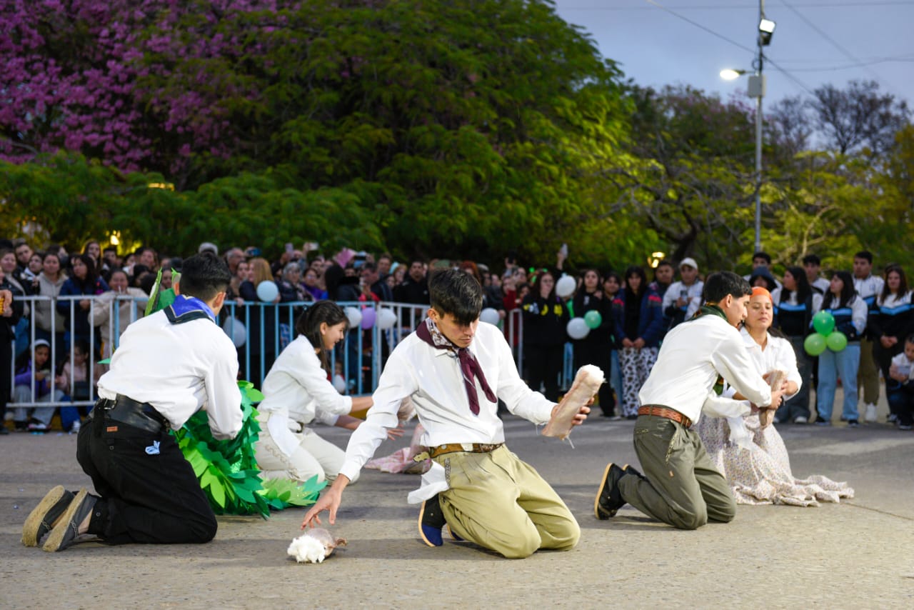 La elección de la Reina Provincial del Estudiante tuvo lugar en la esquina de las calles 12 y 7 del centro, luego del Desfile de Carrozas de los colegios secundarios de la ciudad que también fueron premiados por su creatividad.