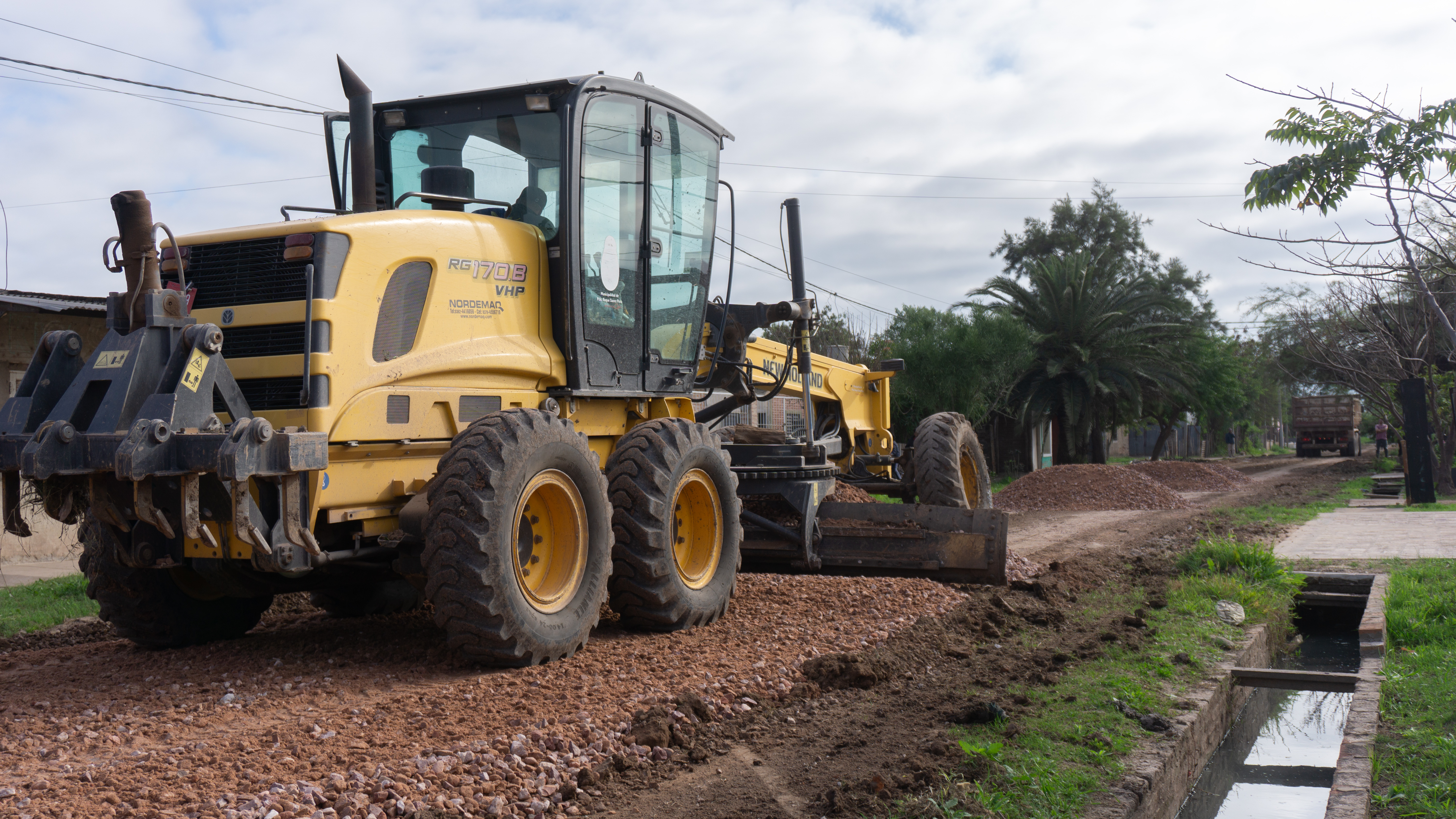 Paralelamente se realiza el cuneteo en la zona intervenida. Estas acciones permitirán optimizar las condiciones de las calles y mejorarán la circulación en el barrio.